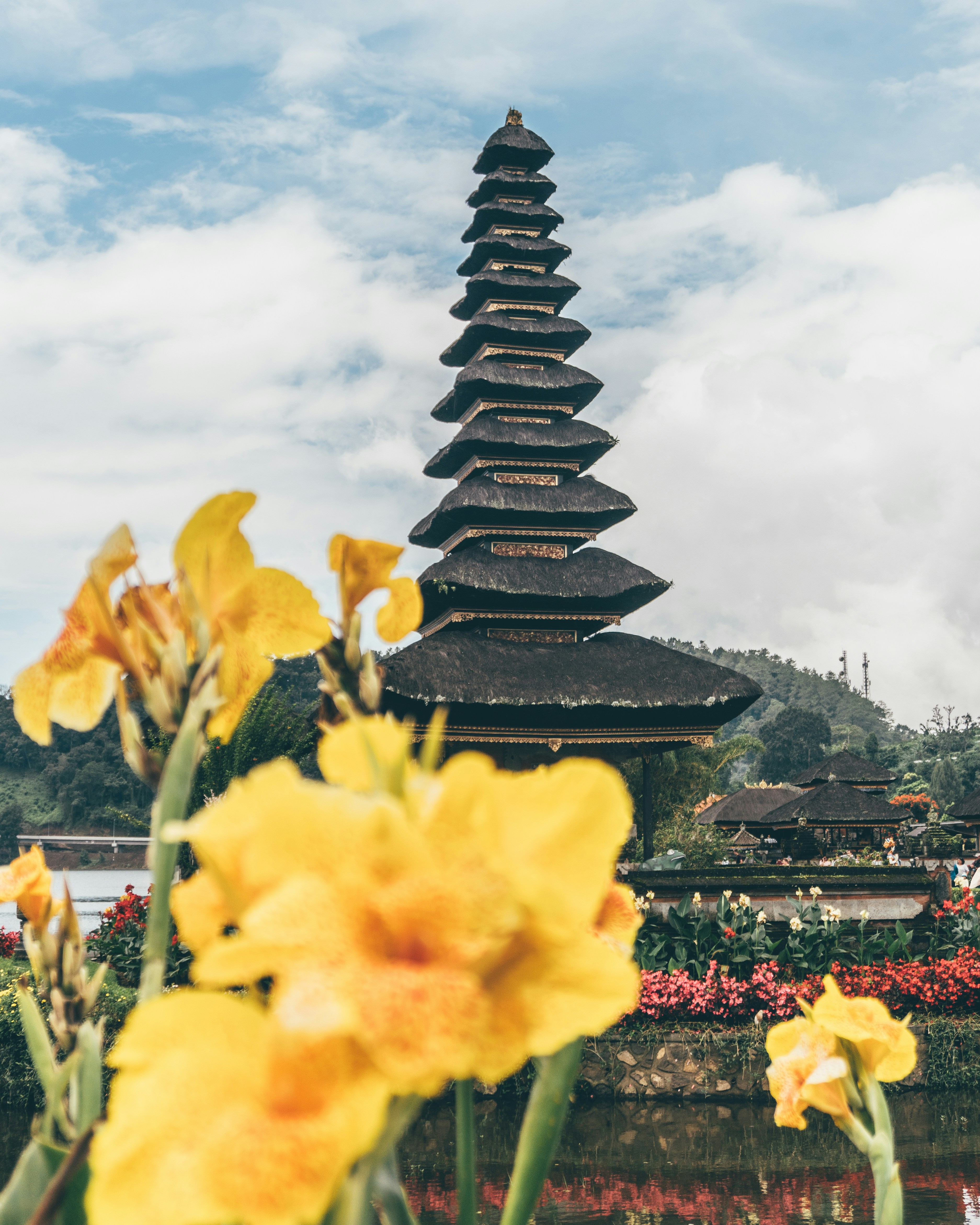 灰色のコンクリート タワーの前の黄色い花の写真 Unsplashで見つけるバリの無料写真