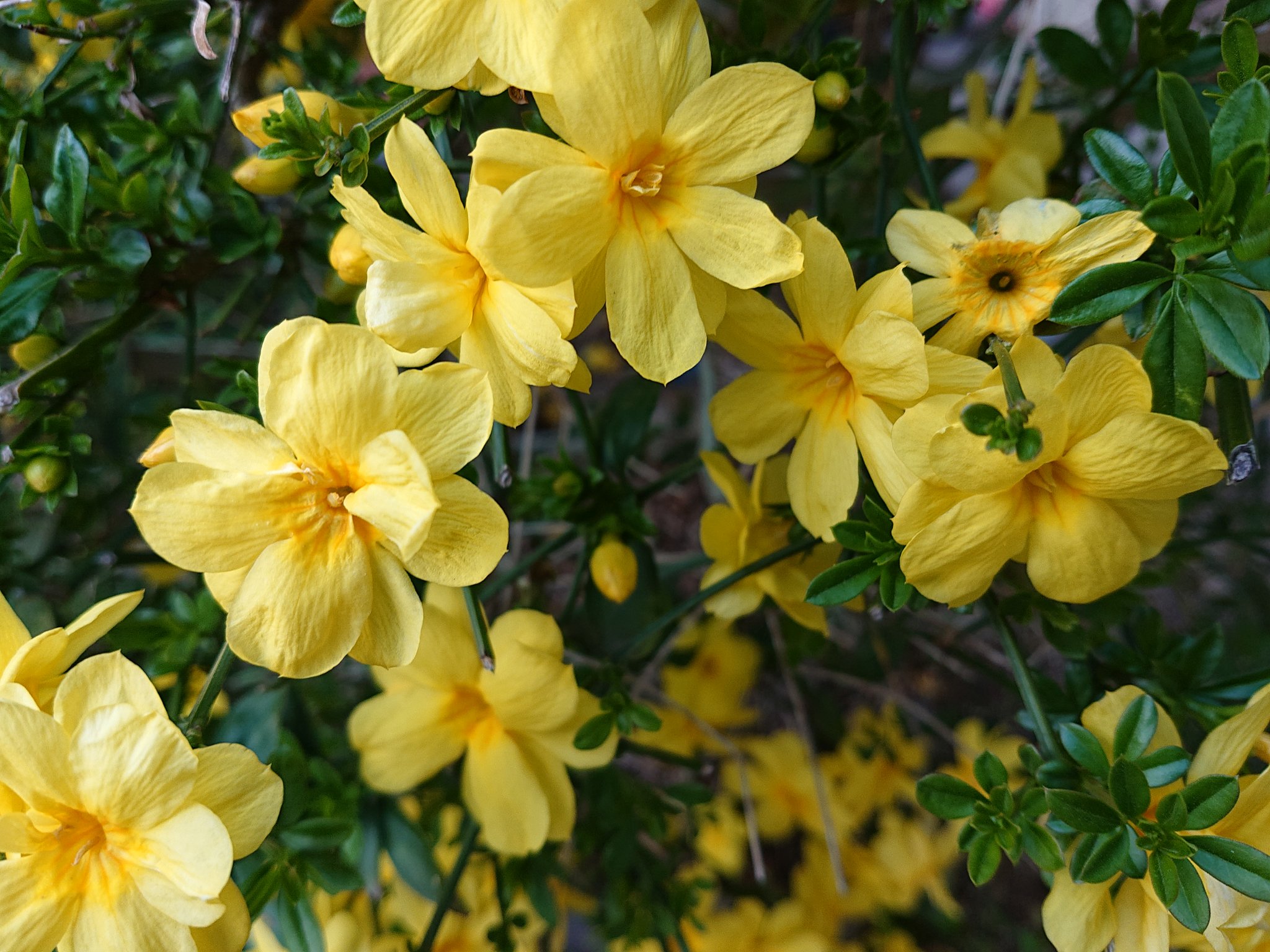 おうばいの花言葉 オウバイ(黄梅、学名 Jasminum nudiflorum)とは これ、キク類モクセイ科ソケイ属(ジャスミン属)の半つる性落葉低木の一つである。 漢字では「黄梅」と書く。 ソケイな